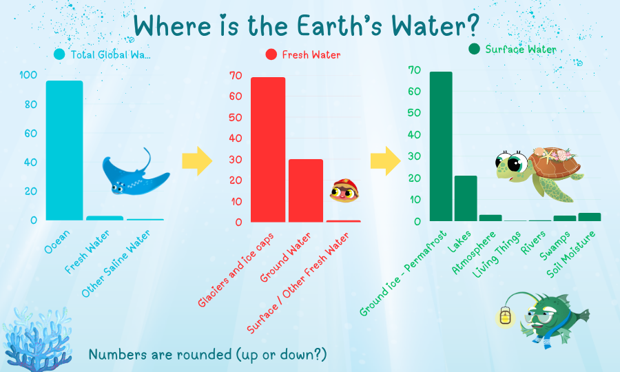 There is a huge amount of freshwater hiding underground, and even under the ocean floor? This “invisible water” is super important, even though we can’t see it!