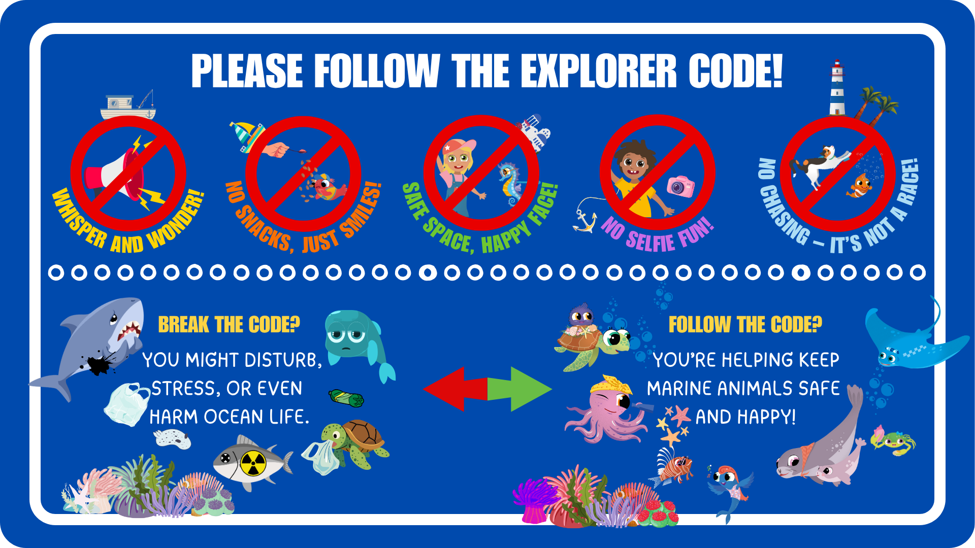 🔥Marine Wildlife Helper Poster: Design a colourful poster with the key rules for observing marine life. You can draw pictures of the animals and the right way to watch them safely. Hang it up at home or at school to remind everyone! We’d love to see your wildlife poster or story, ask a grown-up to send it in.