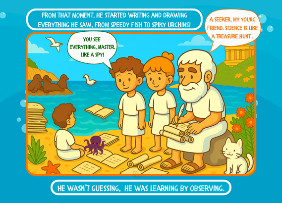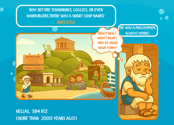 Aristotle taught us that to understand the ocean, we need to slow down, look closely, and stay curious. Just like scientists do today!